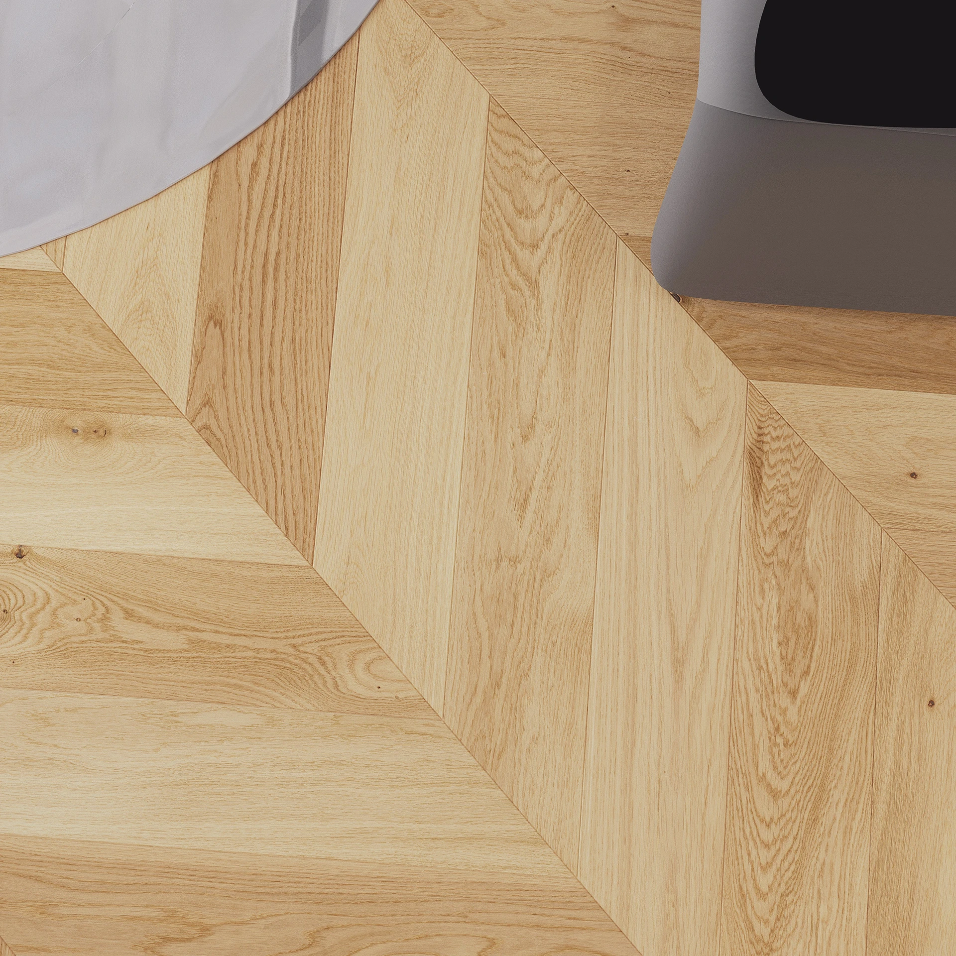 Trägolv med naturlig klassisk ekfärg. Täckt med naturlig olja som framhäver den ädla trästrukturen som blivit extra tydlig genom borstning. Den fyrsidiga mikrofasen får golvet att se lätt ut.