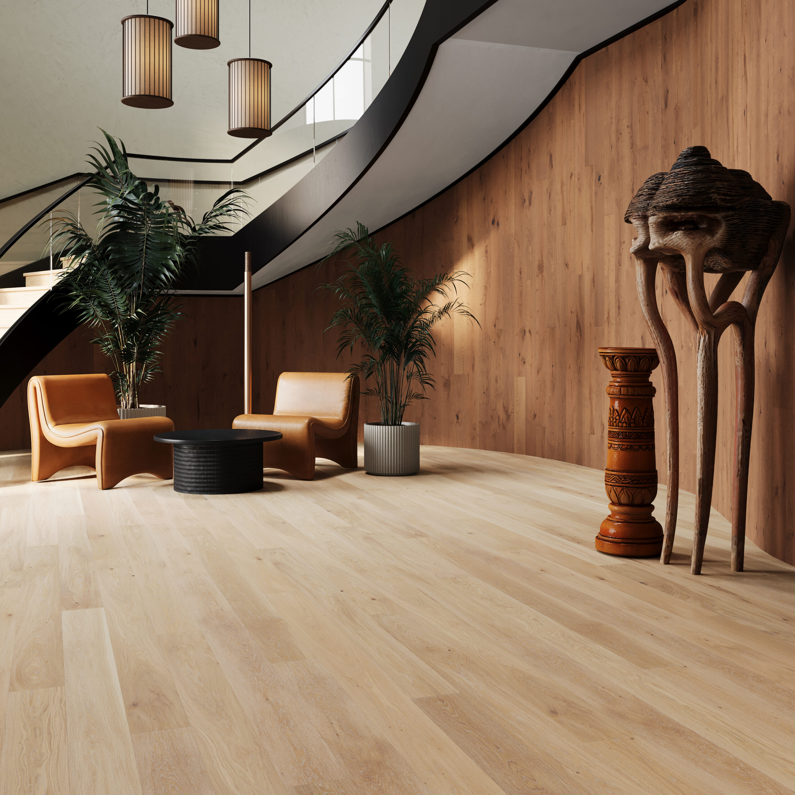 Pudding Grande innebär ett enstavsgolv och denna variant har ytterligare lätt fasade kanter som ger den ett elegant och lätt utseende.